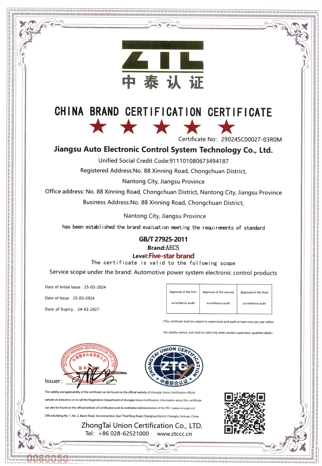 Jiangsu AECS-Five-star brand certification